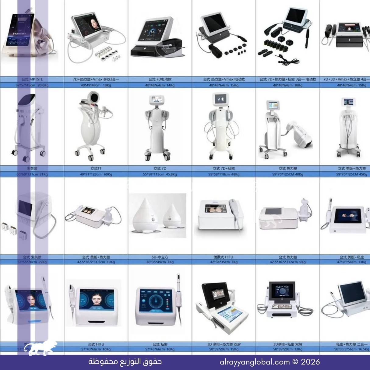تقدم شركة الريان التجارية باقة مختارة من أحدث أجهزة إزالة الشعر، التنحيف، وتجديد البشرة، بتقنيات أمريكية متقدمة، واعتمادية عالية، لتلبي جميع احتياجات العيادات الاحترافية ومراكز التجميل الراقية.