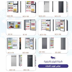- ثلاجات صغيرة (Mini): تبدأ من سعات مدمجة مناسبة للمكاتب والغرف.
