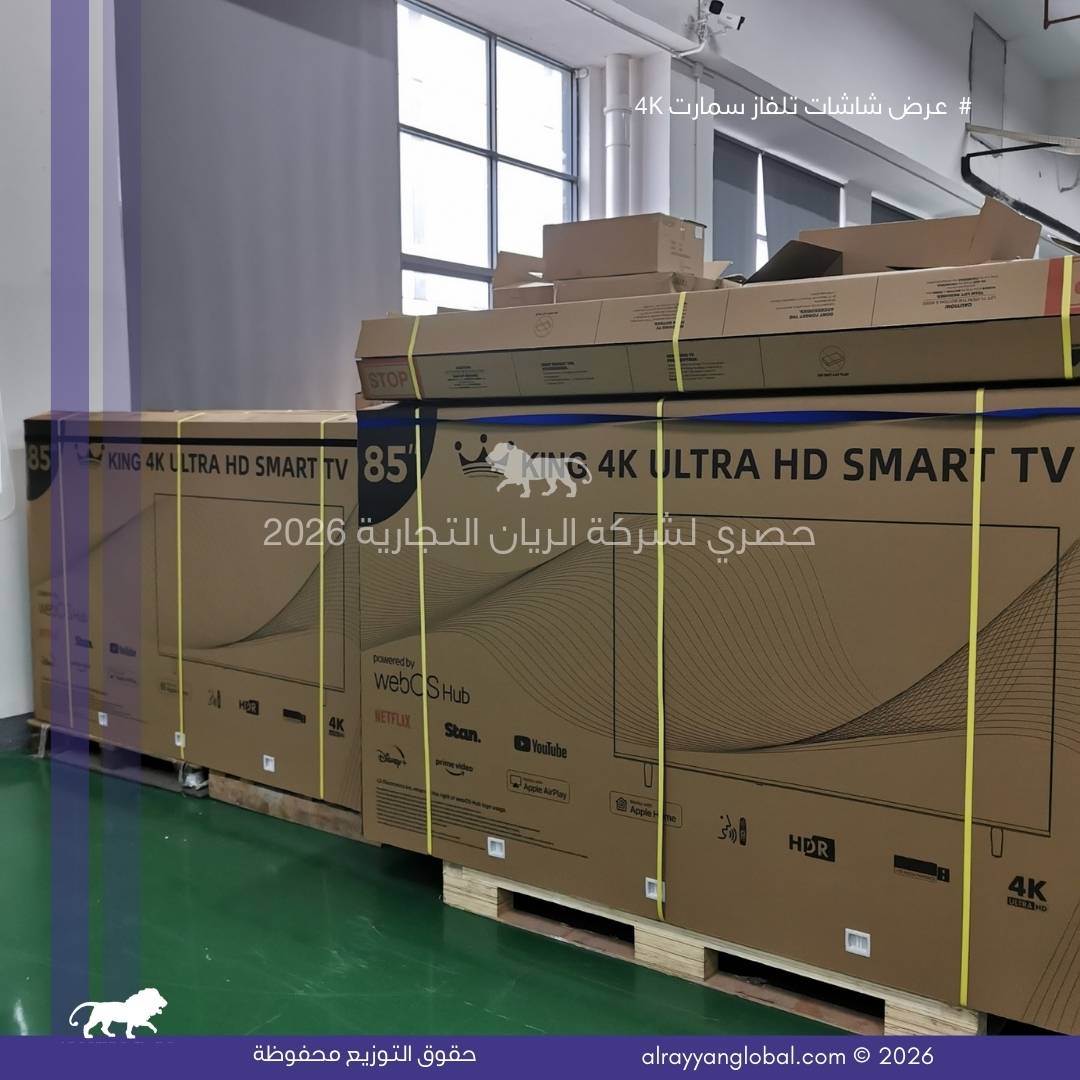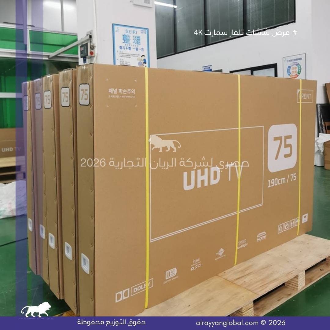 توريد أحدث جيل من شاشات Smart 4K Crystal Ultra HD TV لعام 2026، المصممة وفق أحدث المعايير العالمية من حيث الجودة، الأداء، والاستدامة التقنية، والمخصصة لتجار الجملة والموزعين وأصحاب المشاريع الكبرى.