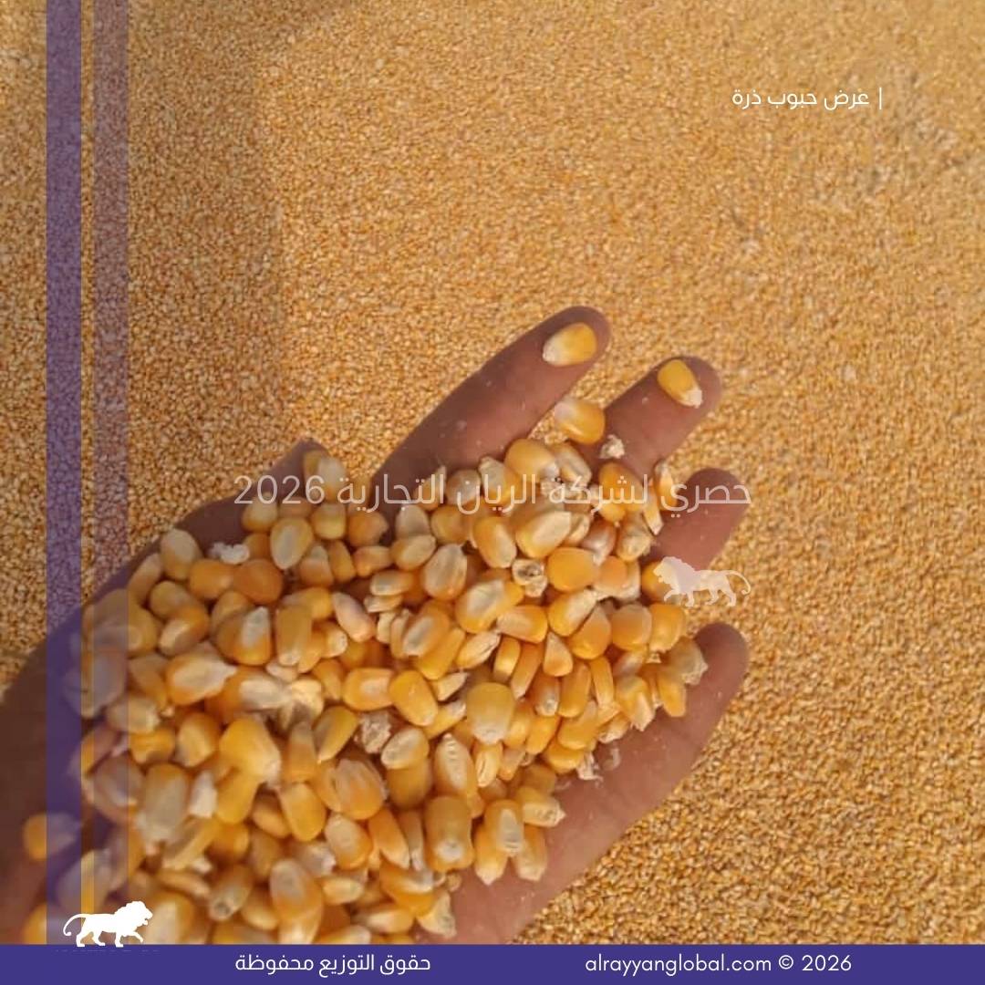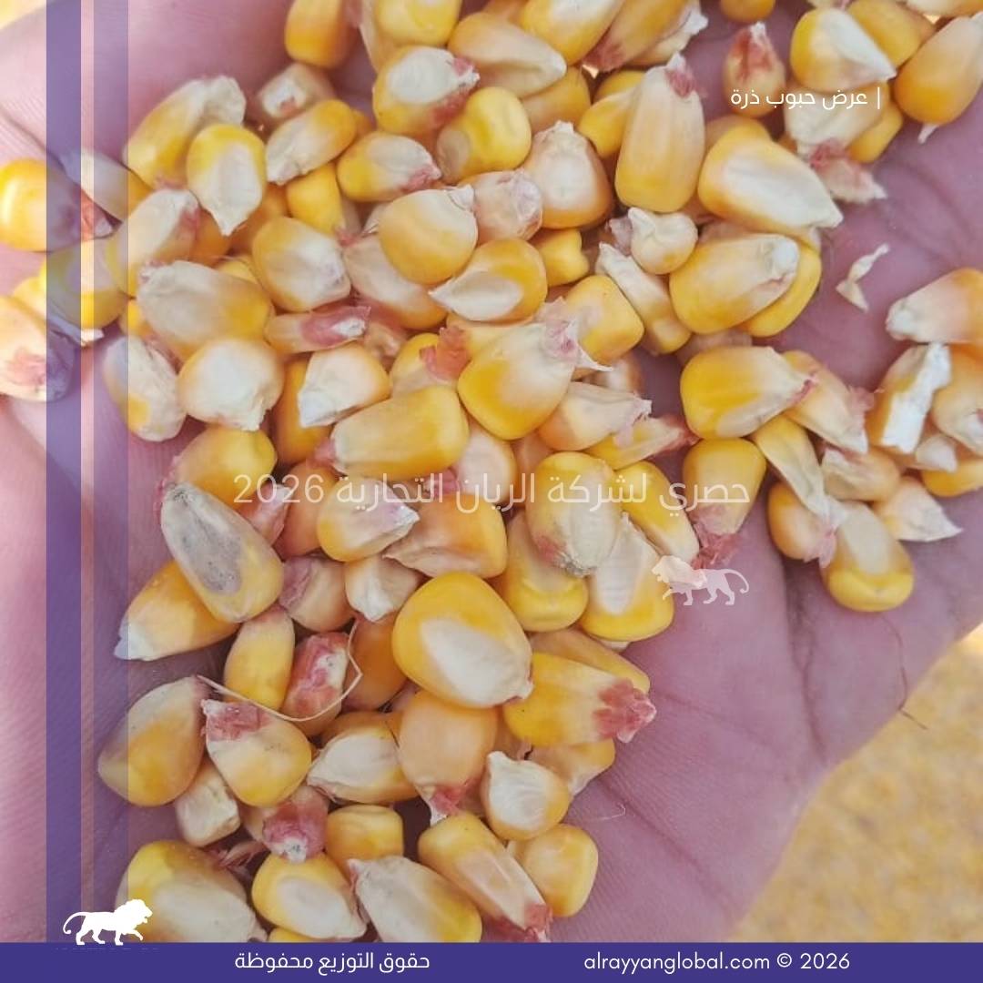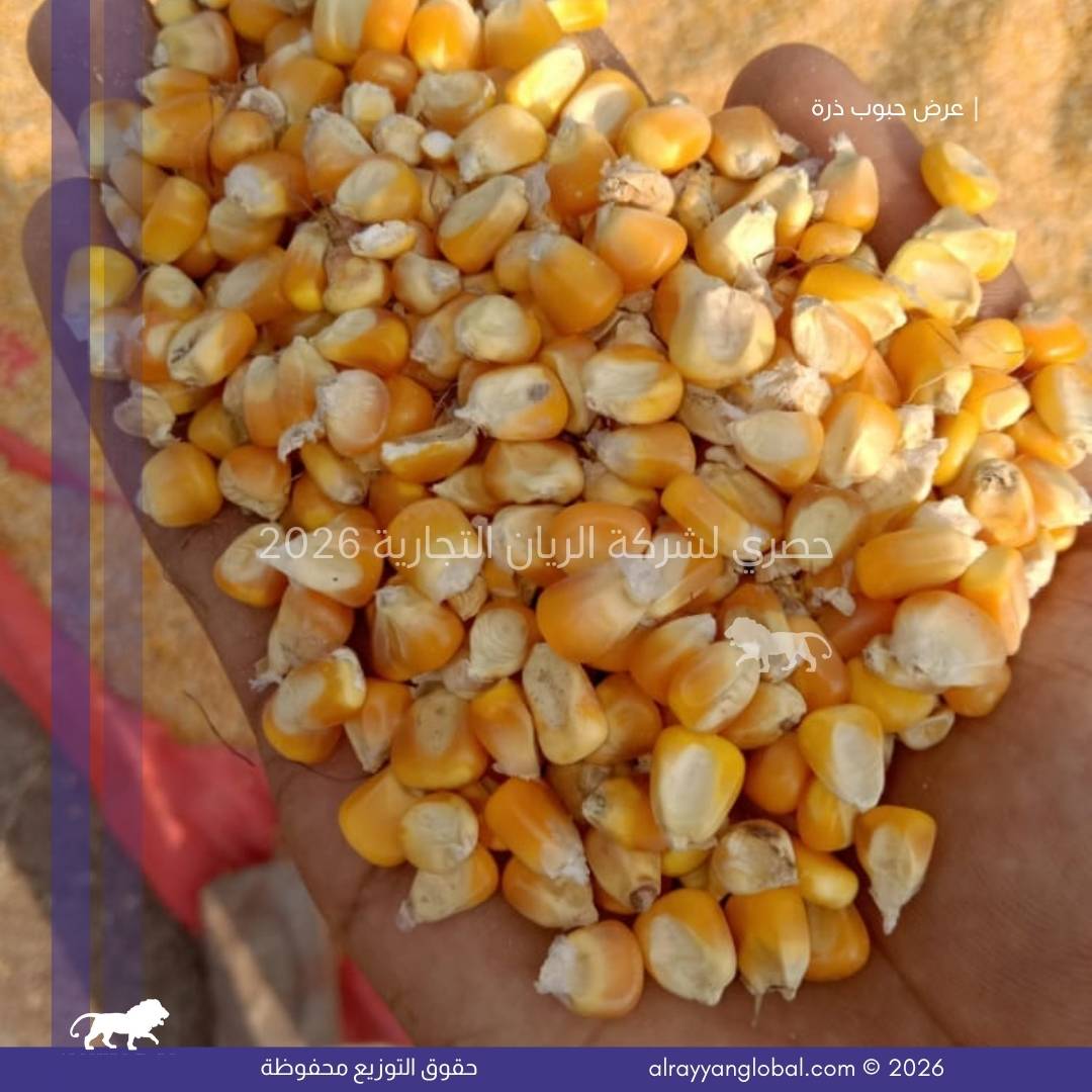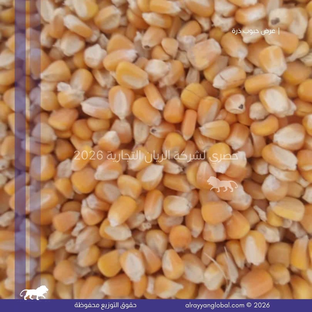 توفر شركة الريان التجارية ذرة صفراء ذهبية من محصول حديث، منتقاة ومجهزة بعناية لتكون مناسبة للاستهلاك البشري والصناعات الغذائية. يتم تنظيف الحبوب وفرزها وتجفيفها وفق المعايير الدولية لضمان النقاوة، التجانس، وخلو المنتج من العيوب أو الملوثات، مما يجعلها مادة خام مناسبة للمصانع الغذائية ومطاحن الذرة.