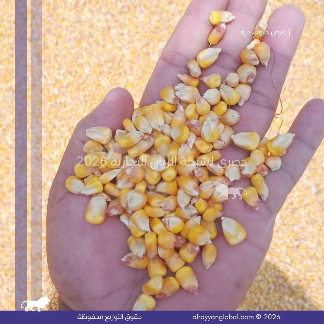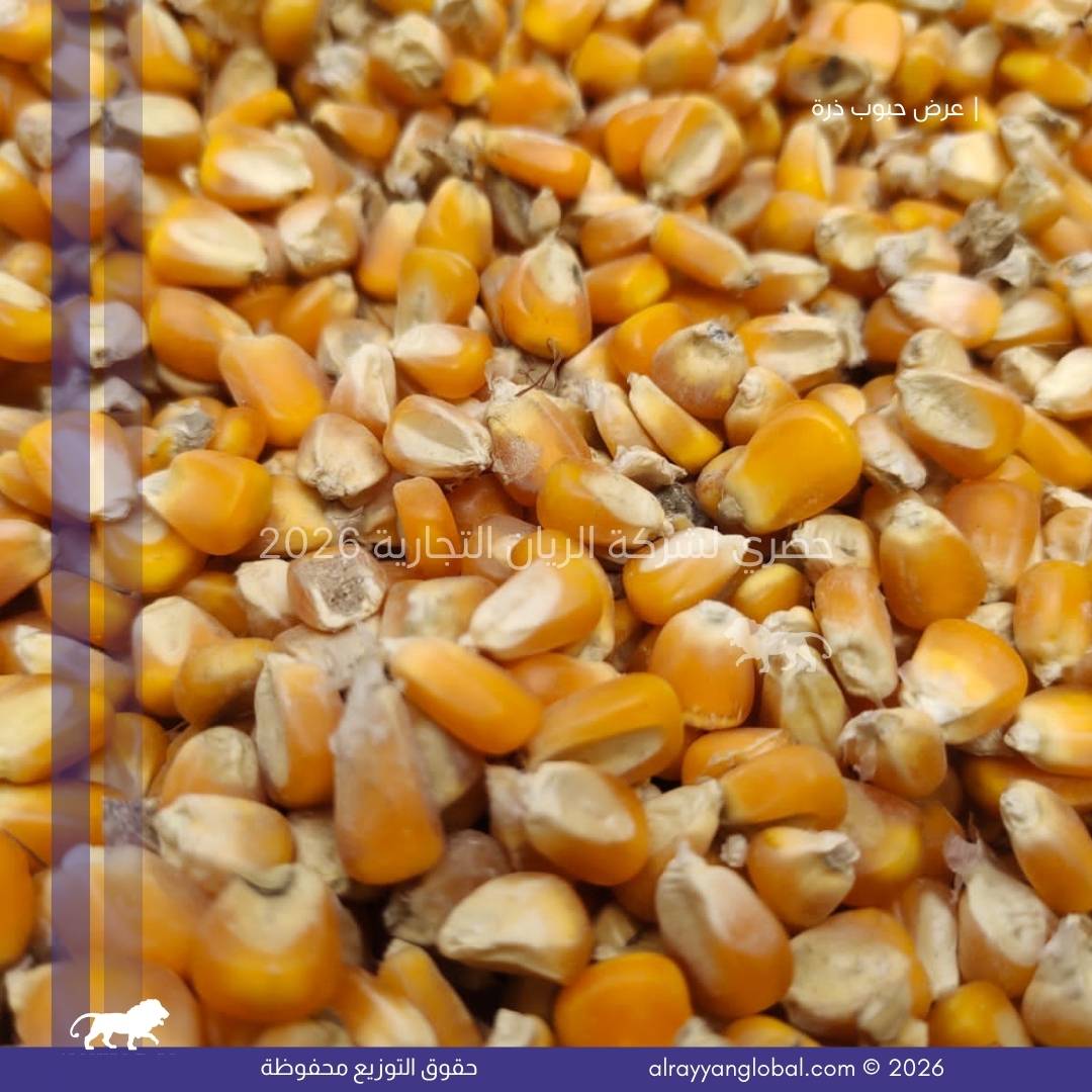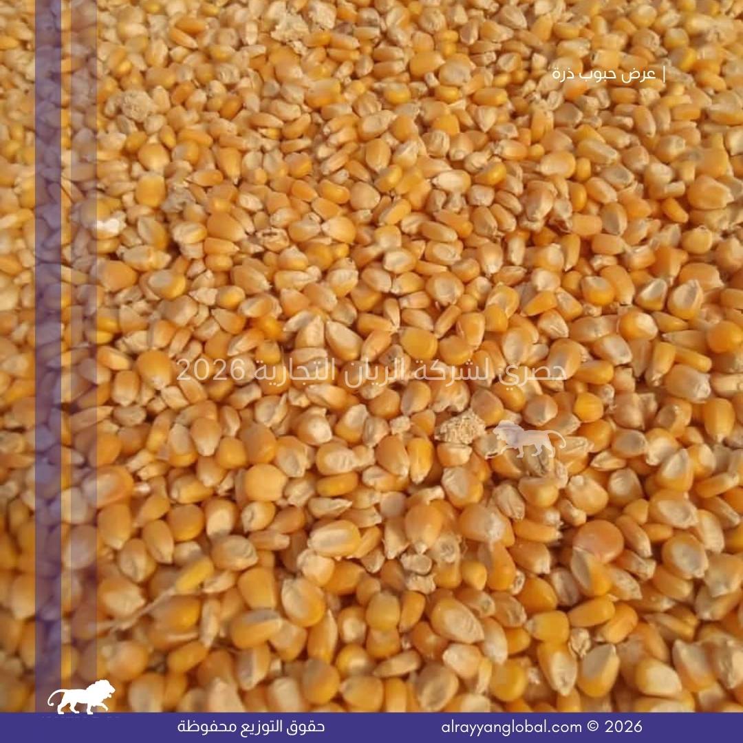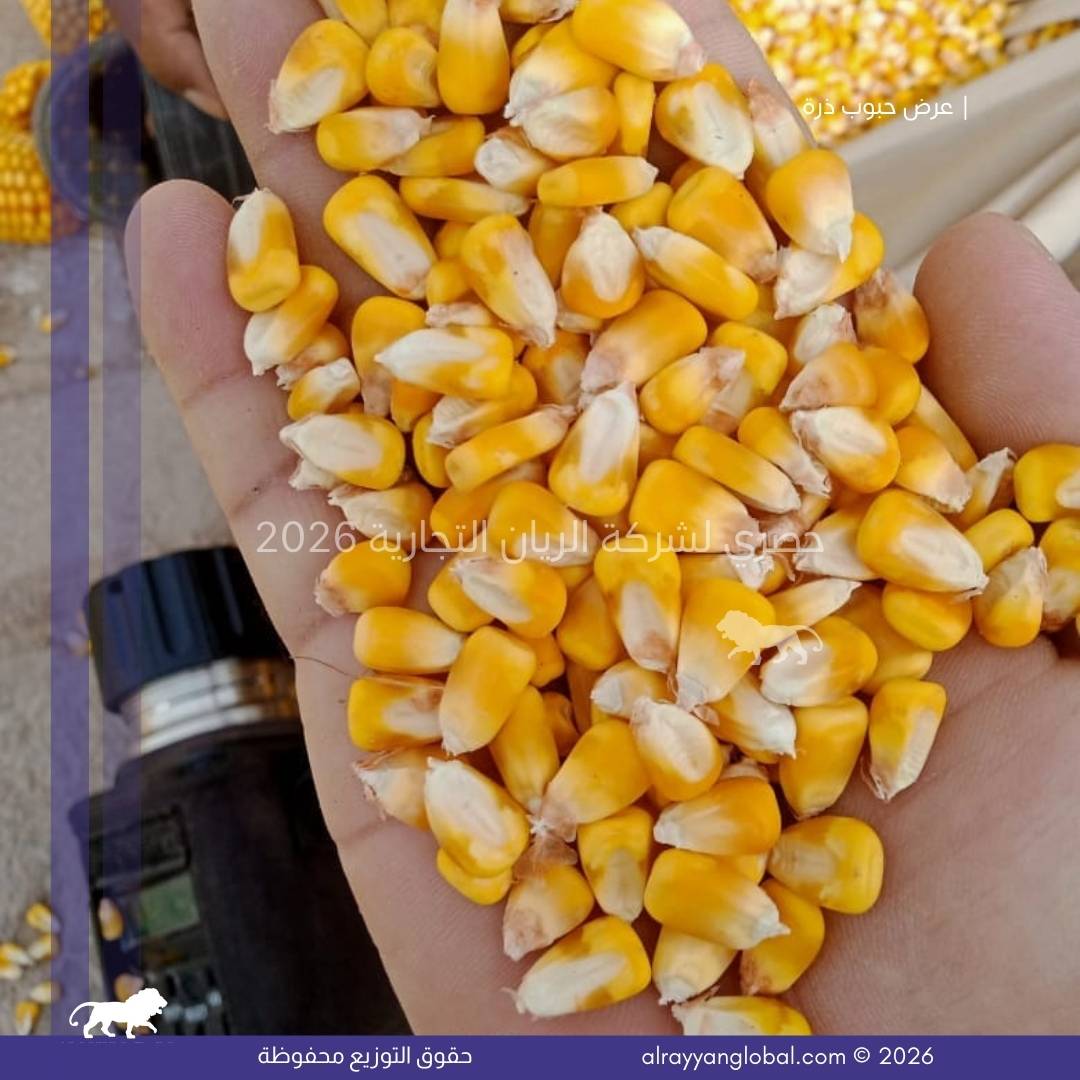 توفر شركة الريان التجارية ذرة صفراء ذهبية من محصول حديث، منتقاة ومجهزة بعناية لتكون مناسبة للاستهلاك البشري والصناعات الغذائية. يتم تنظيف الحبوب وفرزها وتجفيفها وفق المعايير الدولية لضمان النقاوة، التجانس، وخلو المنتج من العيوب أو الملوثات، مما يجعلها مادة خام مناسبة للمصانع الغذائية ومطاحن الذرة.
